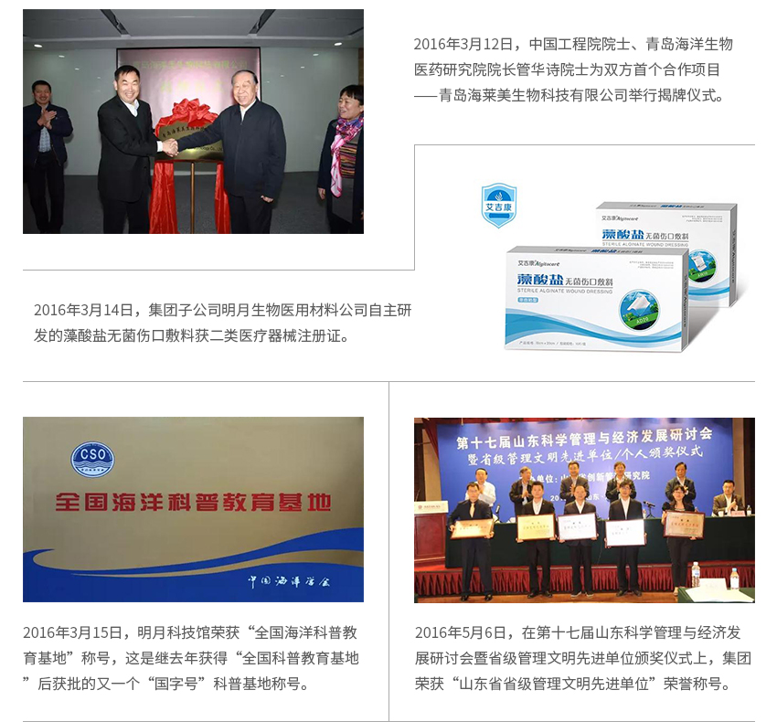 3月17日 明月海藻集團被山東省商務廳認定為第六批"山東老字號"企業。
