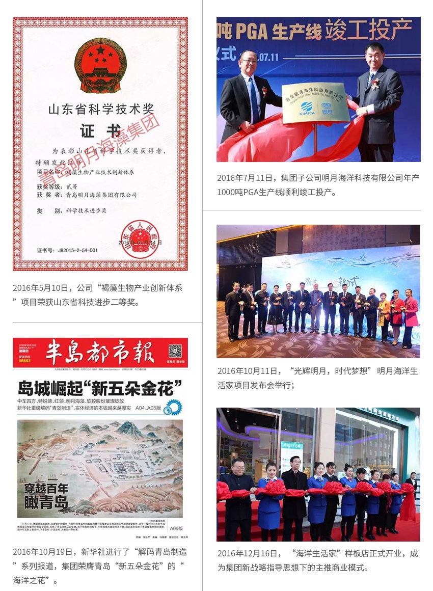 11月,明月海藻集團榮獲"山東省全員創新企業"稱號。