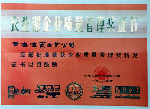 1989年,黃海海藻工業公司被評為國家二級企業,是當時國內的海藻綜合性加工企業。
