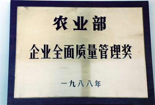 1988年6月獲得國家農業部設備管理優秀單位獎。