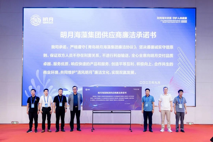 隨后,在集團副總裁李振廣詳盡地為大家解讀供應商管理和質(zhì)量管理體系的相關內(nèi)容后,7家戰(zhàn)略供應商代表上臺簽訂《青島明月海藻集團供應商廉潔承諾書》。