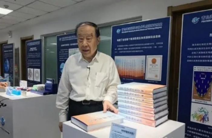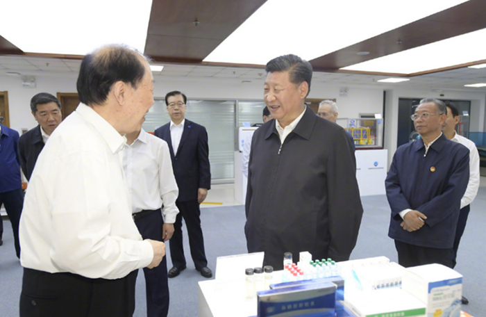 2018年6月12日上午,習(xí)近平在青島海洋科學(xué)與技術(shù)試點(diǎn)國家實(shí)驗(yàn)室,聽取了79歲的中國工程院院士管華詩關(guān)于海洋藥物研發(fā)情況的介紹。