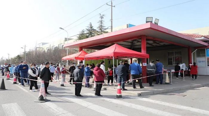 自啟動全員核酸檢測工作以來,全體職工迅速集結、積極配合、凝心聚力、多聲號召接踵而至,千萬身影奮勇爭先,嚴格按照要求,從嚴從緊、從實從細落實各項措施,大家分時段、分批次到達核酸檢測地點積極配合采樣工作,安全快速離開檢測點,經過全員配合和志愿者及工作人員辛苦連夜工作已順利完成三輪7000余人次的核酸檢測工作。